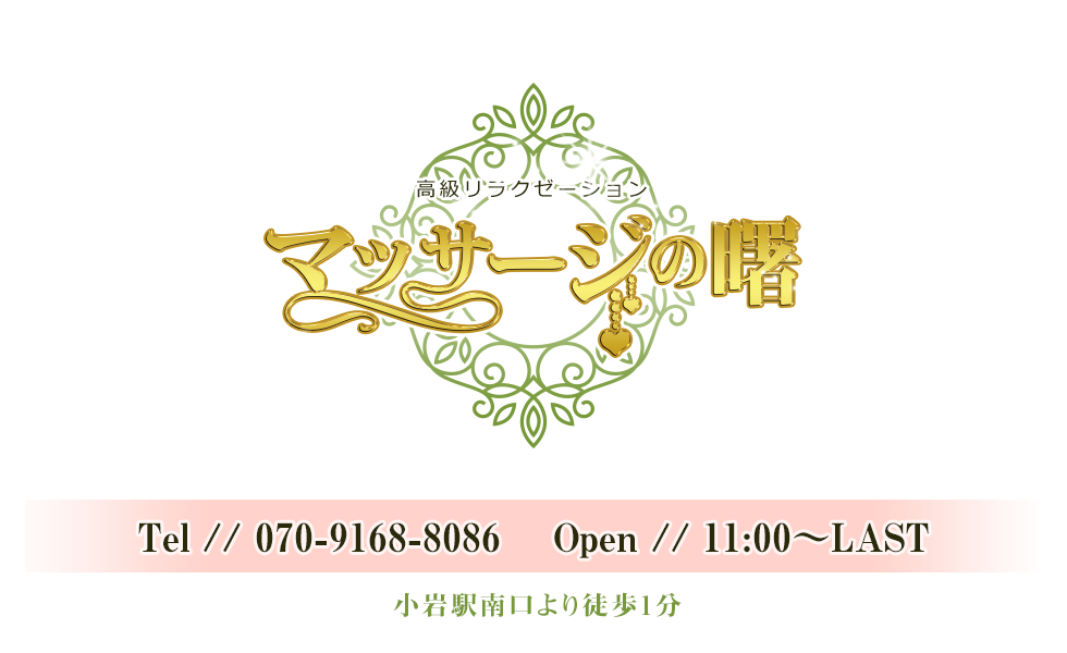 お仕事ご苦労様です。マッサージは純粋に身体的疲労を取り除くものとお思いの方もいらっしゃるでしょう。当店では身体の疲れはもちろんのこと、同時に心の疲れも癒すことができるようでマッサージをさせて頂きます。癒しの形は十人十色だと思いますが、求められている癒しをご提供できるよう。スタッフ一同最善を尽くす所存でございます。